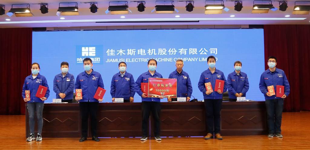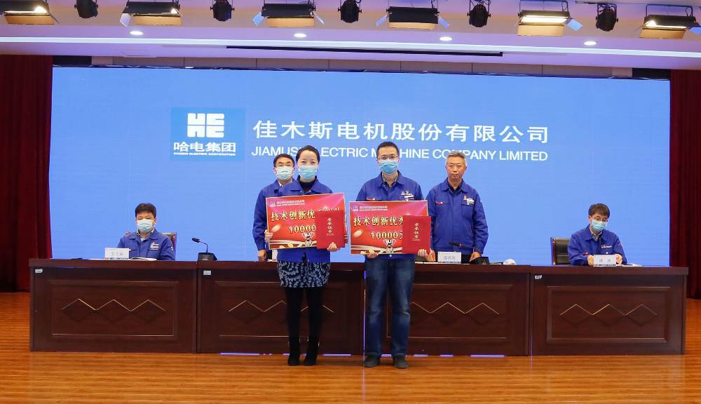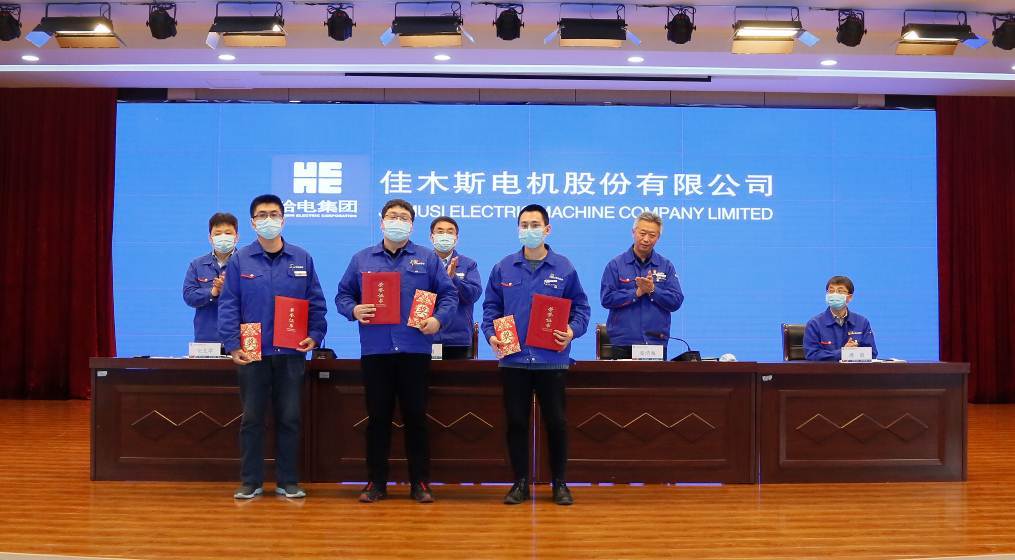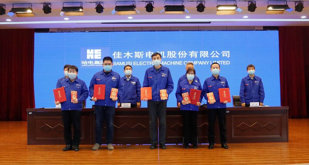 副總經(jīng)理安文舉宣讀了《哈爾濱電氣集團(tuán)佳木斯電機(jī)股份有限公司關(guān)于2020年科技工作表彰獎(jiǎng)勵(lì)的決定》,表彰了為公司科技事業(yè)做出突出貢獻(xiàn)的先進(jìn)集體和先進(jìn)個(gè)人,并為獲獎(jiǎng)代表頒獎(jiǎng)。