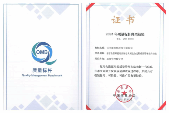 近日,2025年中國(guó)質(zhì)量協(xié)會(huì)年會(huì)暨第三屆追求卓越大會(huì)在北京成功召開,哈電集團(tuán)佳木斯電機(jī)股份有限公司(以下簡(jiǎn)稱“佳電股份”)憑借“基于數(shù)智賦能的高壓電機(jī)制造全過(guò)程質(zhì)量管理提升經(jīng)驗(yàn)”,獲評(píng)中國(guó)質(zhì)量協(xié)會(huì)2025年全國(guó)質(zhì)量標(biāo)桿。此項(xiàng)榮譽(yù)的背后,是國(guó)家權(quán)威機(jī)構(gòu)對(duì)佳電股份創(chuàng)新質(zhì)量管理模式的高度認(rèn)可——其先進(jìn)性、實(shí)踐性與推廣價(jià)值已成為裝備制造業(yè)高質(zhì)量發(fā)展的標(biāo)桿,更為傳統(tǒng)制造業(yè)轉(zhuǎn)型提供了可借鑒、可復(fù)制的“佳電方案”。